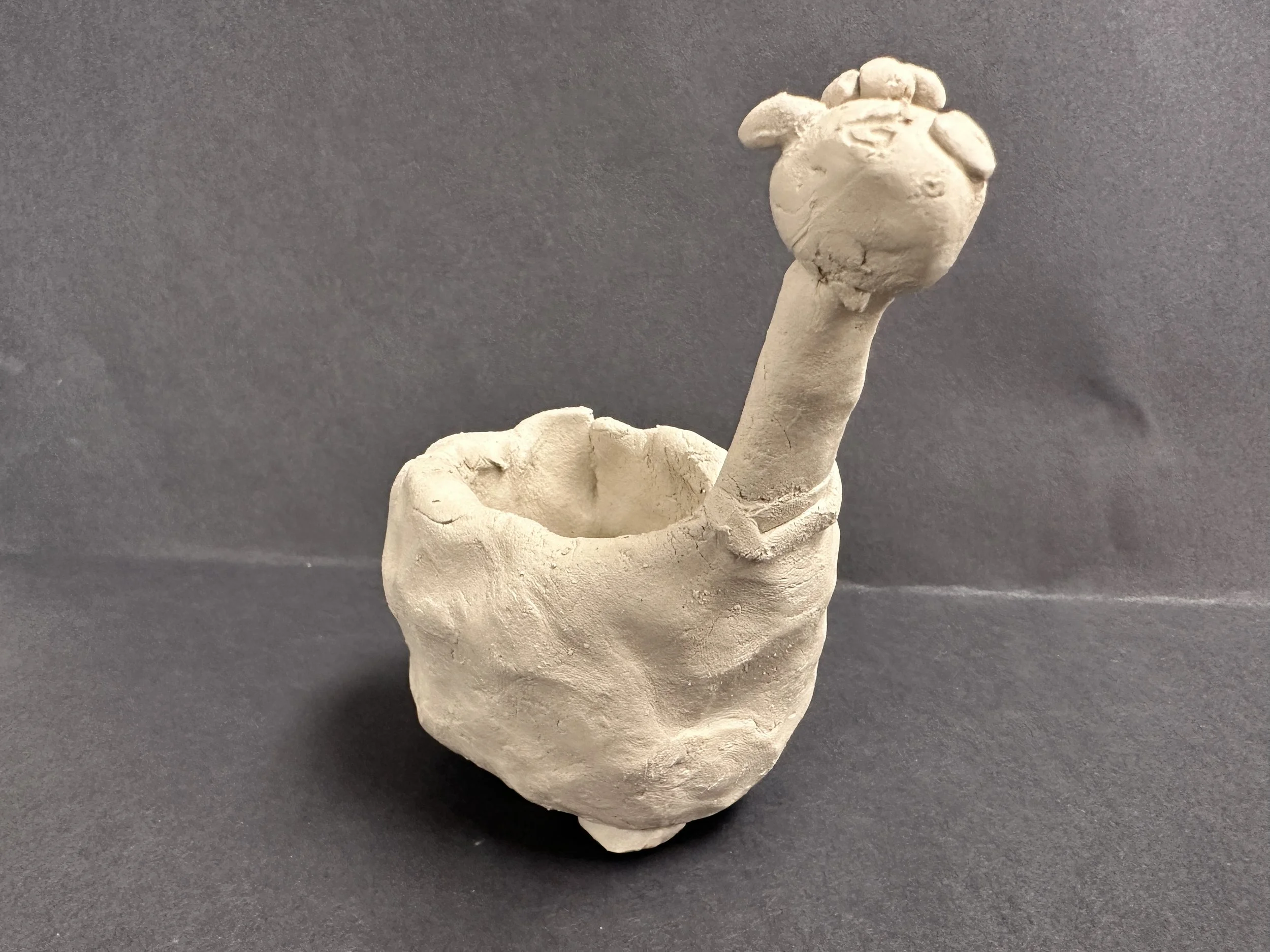 Grade 4: Nevaeh L. Altered Pinch Pot Giraffe (Work In Progress)